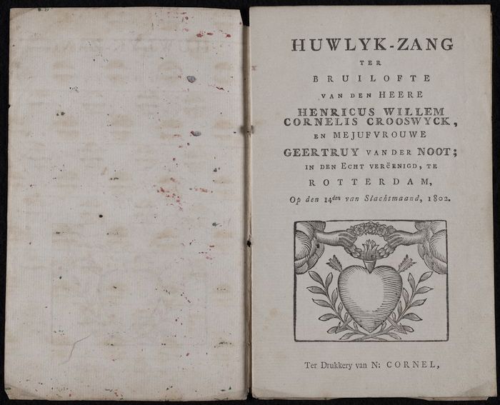 Boek met gedrukte liederen, "Huwlyk-zang", ter ere v...