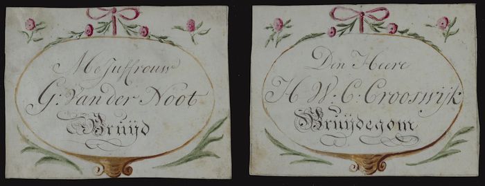 Naamkaarten voor "Mejuffrouw G. V.D. Noot, nu Croosw...