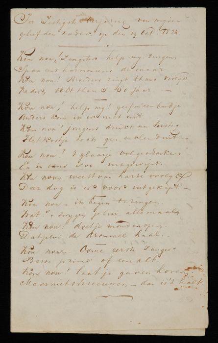 Versje in drie coupletten, waarschijnlijk voor moede...