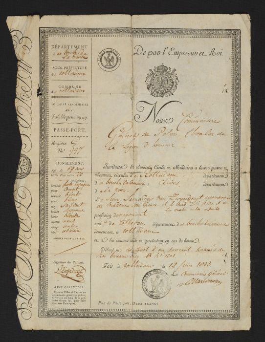 Paspoort van Leonardus van Zwijndregt, uitgegeven in...