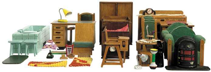 Eikenhouten miniatuur dressoir met twee deuren, een ...
