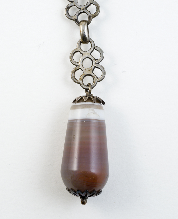 Ivoren hanger met twee monniken aan schakelketting