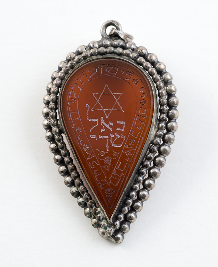 Joodse amulet van edelsteen met davidsster en inscri...