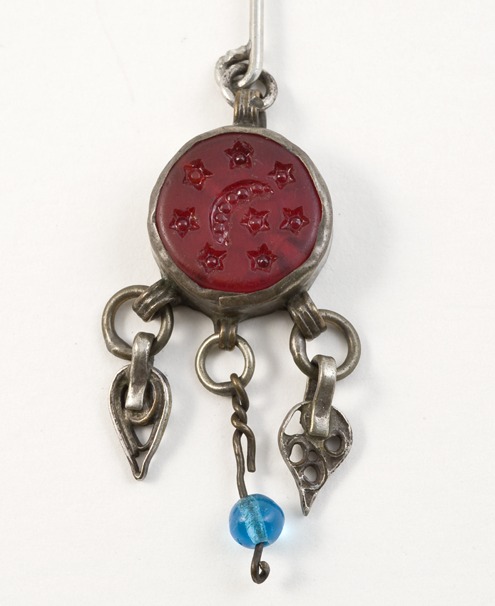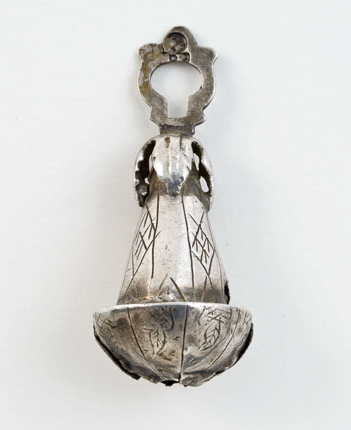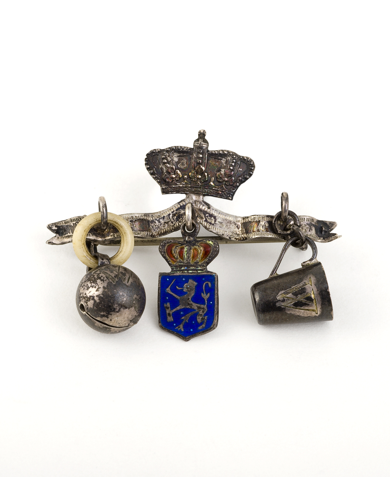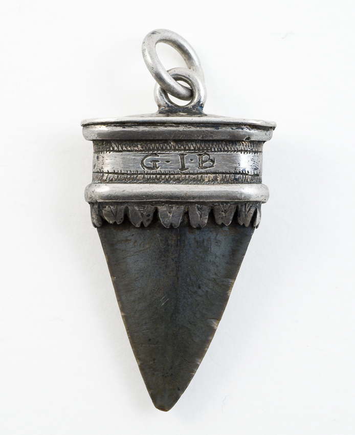Metalen tandamulet met jaartal 1623 en initialen G.I.B.