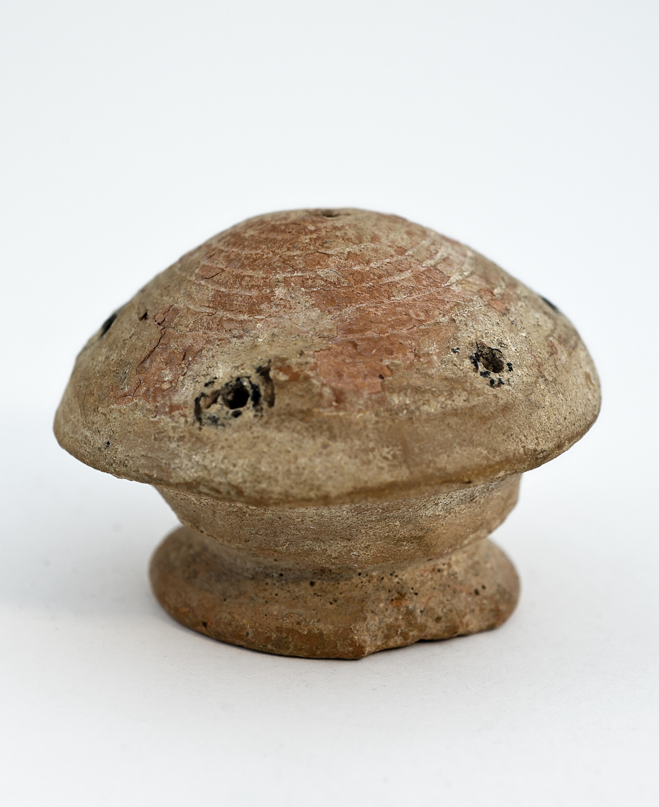 Terracotta rammelaar en paddenstoel vorm en uit de o...