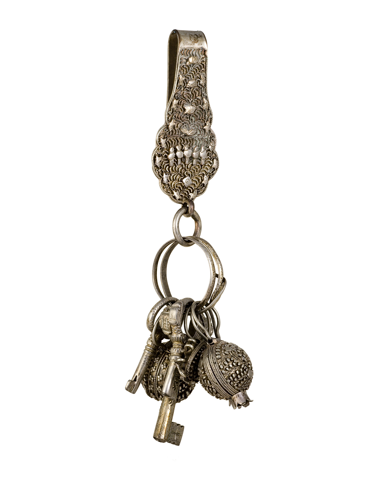 Zilveren chatelaine met sleutels en granaatappelvorm...