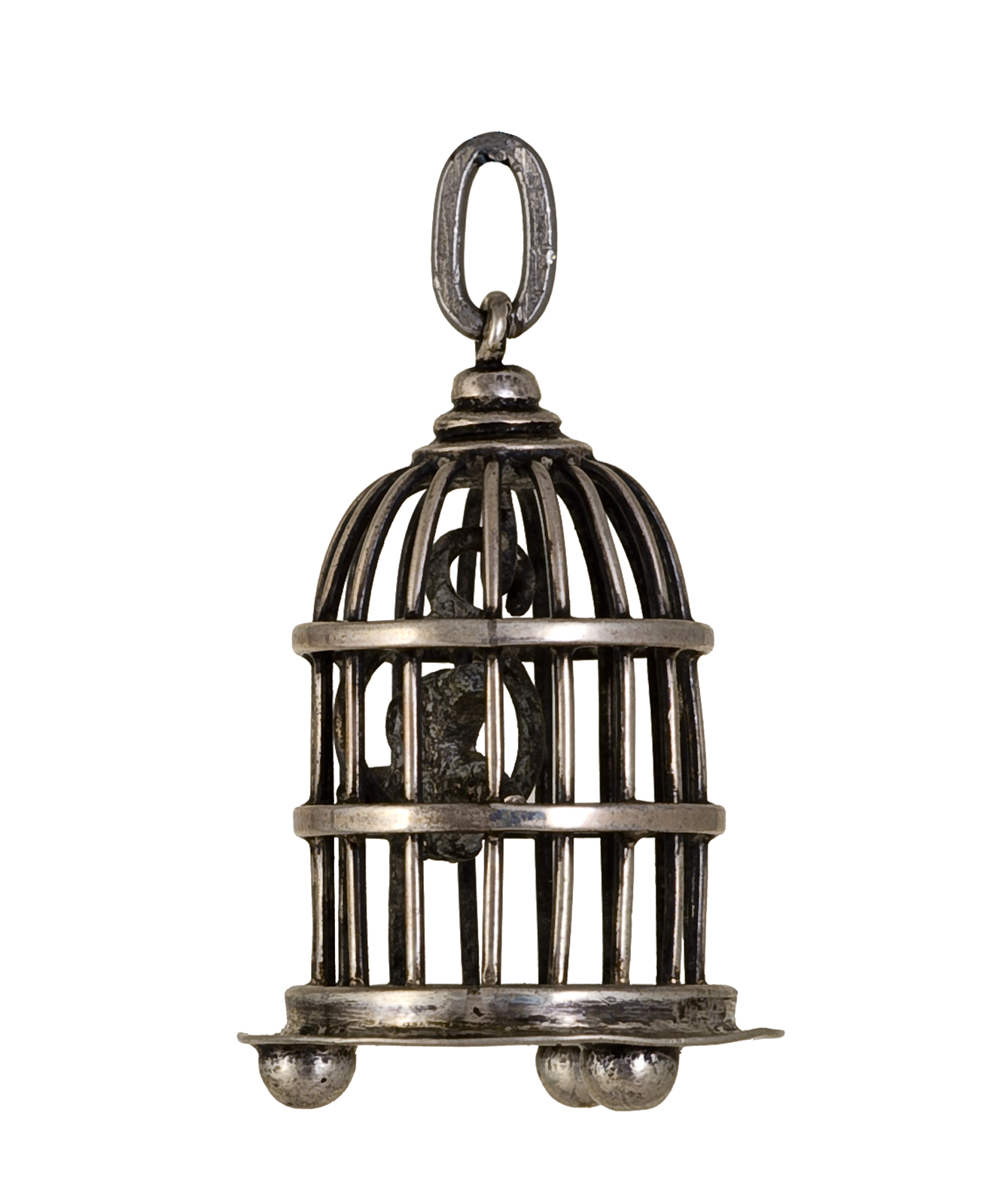 Zilveren miniatuur vogelkooi hanger