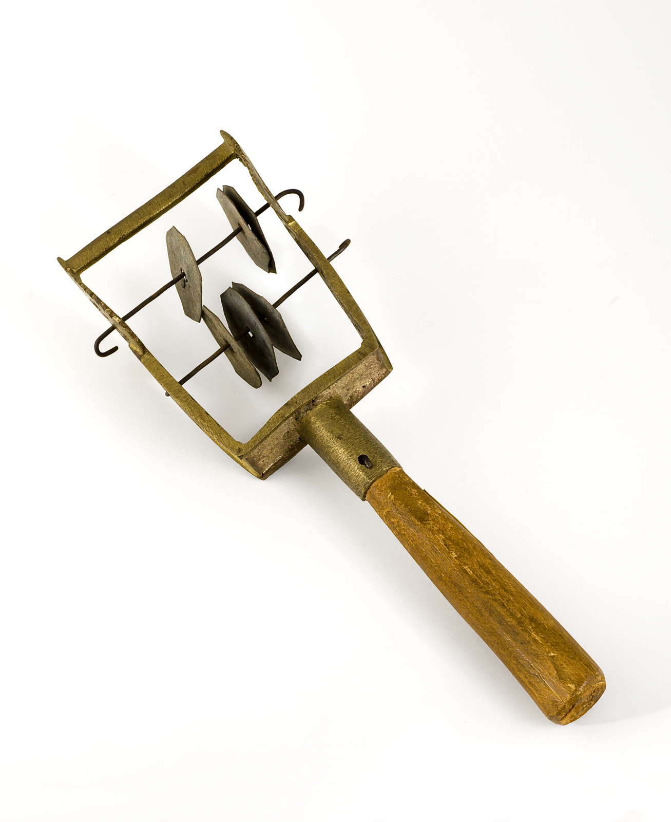 Benen rammelaar met fluitje en gedraaid metaal voor ...
