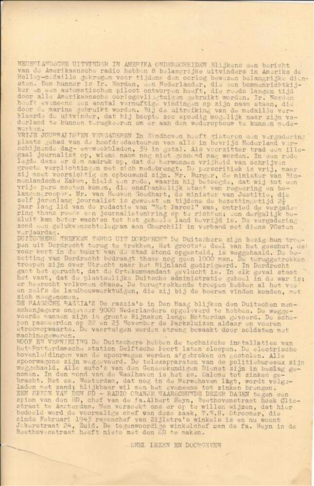 De Eendracht. Voorjaar 1945. wijlen verzetsorgaan vo...