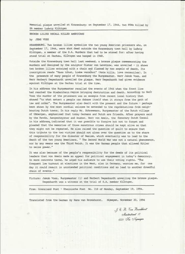 Rheinlandische Post, 19 september 1994 betreffende d...