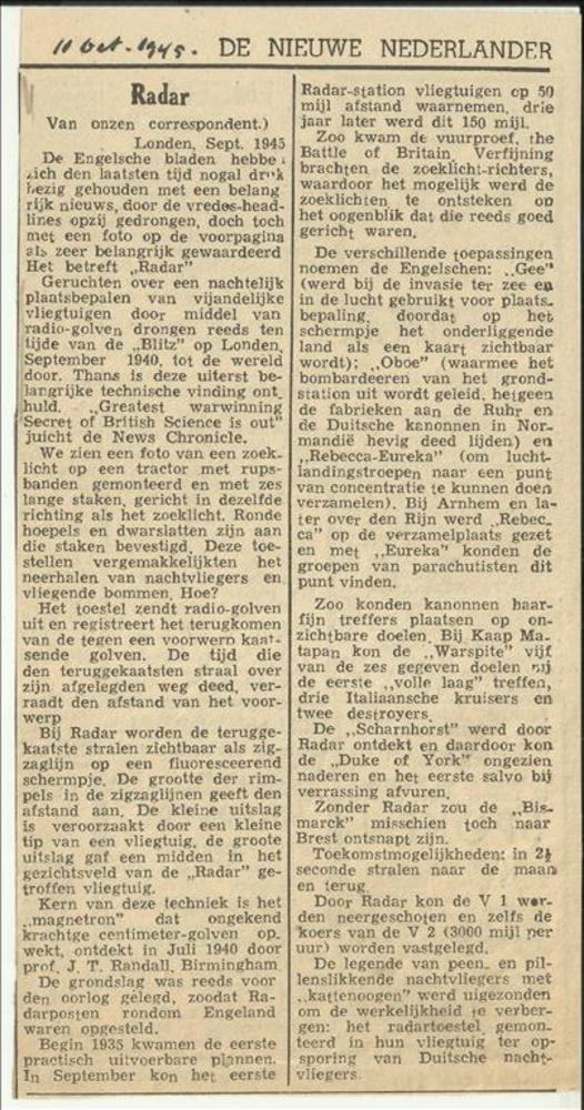Radar uit de Nieuwe Nederlander 11 oktober 1945