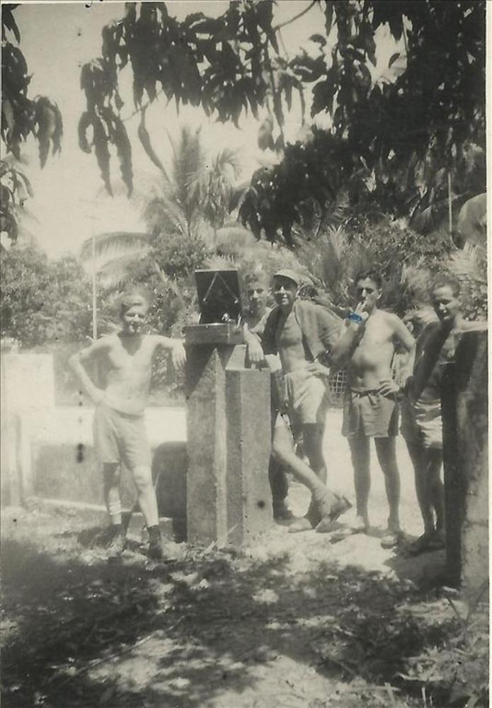 Indië; Nederlandse militairen met grammofoon in Indo...