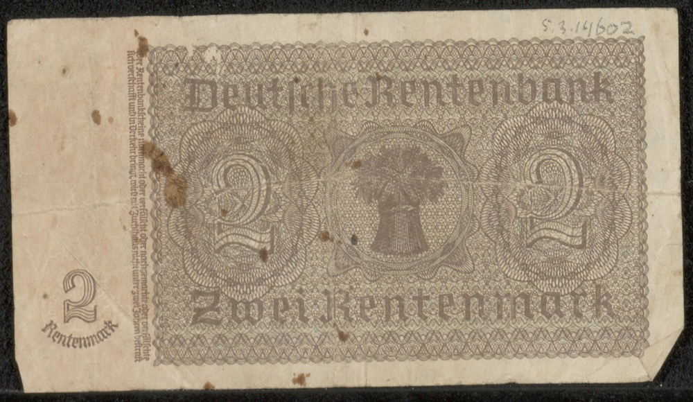 Bankbiljet, Duits, Zwei Rentenmark, serienummer H.02...