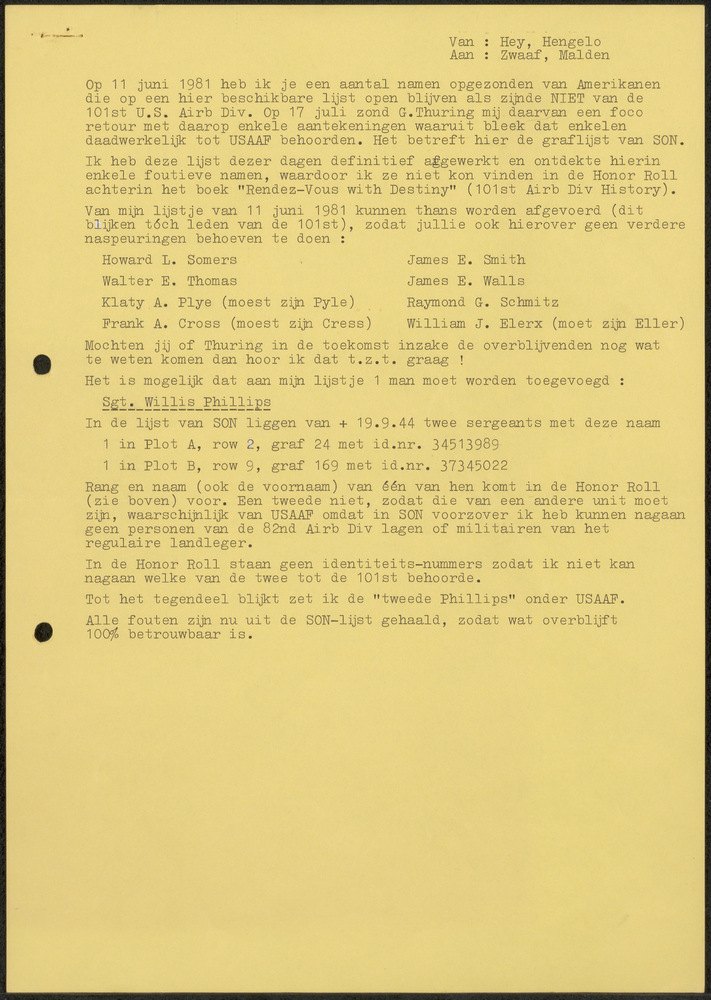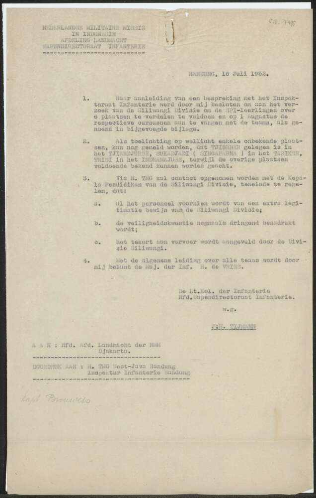 Brief van de Nederlandse Militaire Missie aan Hoofd ...