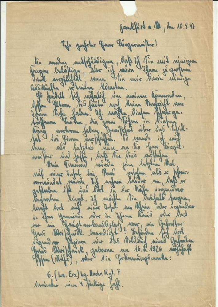 Brief aan de burgemeester van Bienen van Bruno Ott