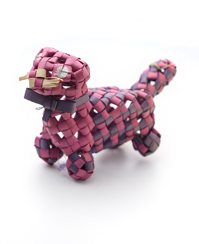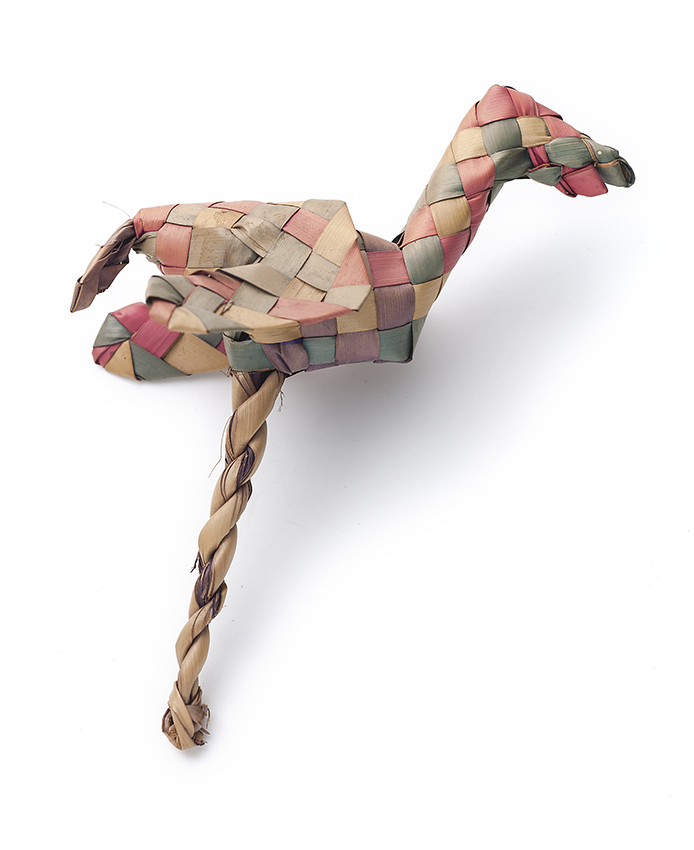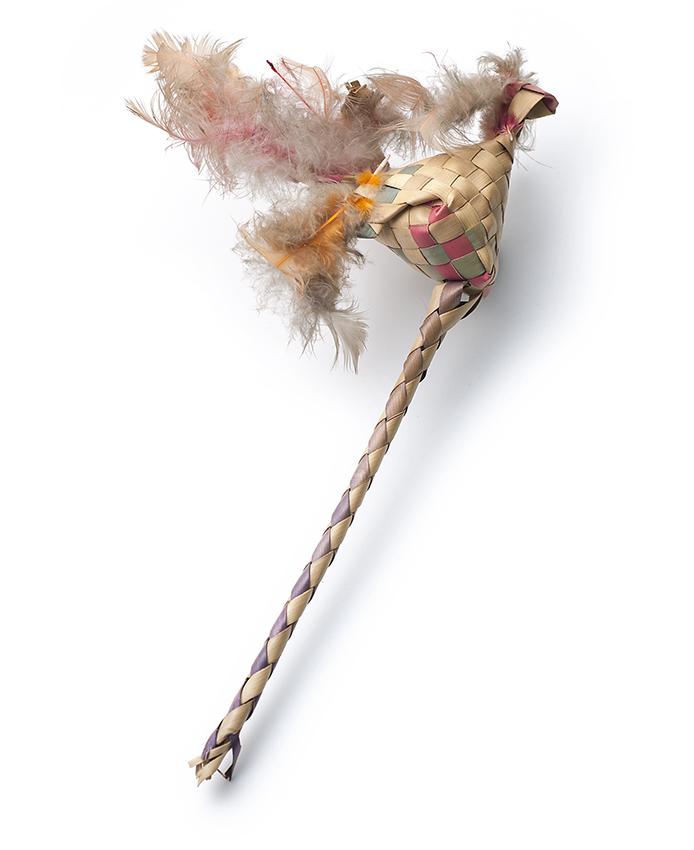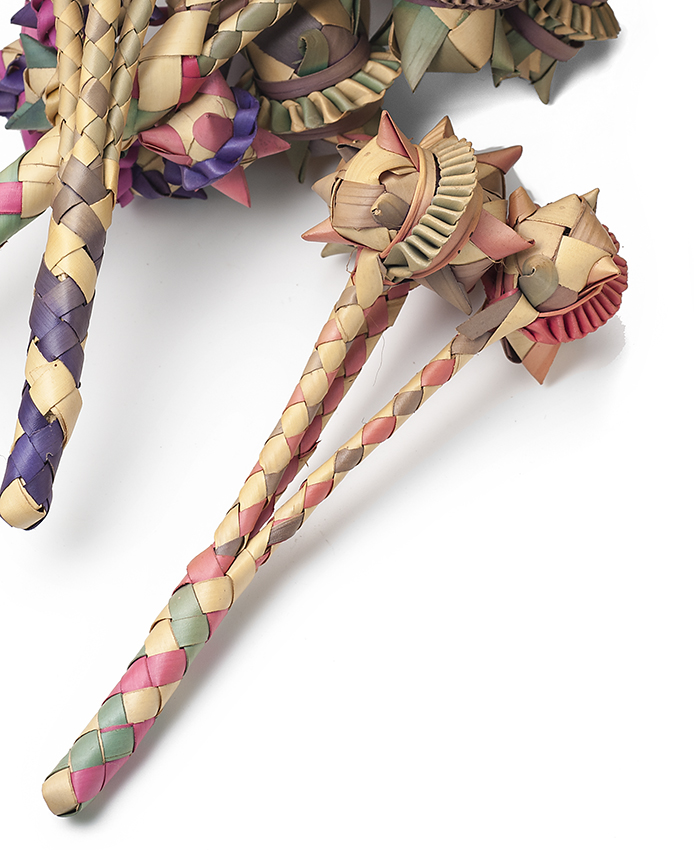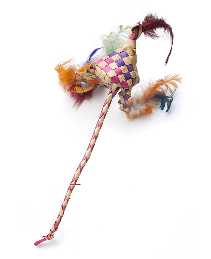 Gevlochten vogel rammelaar van gekleurd palmblad