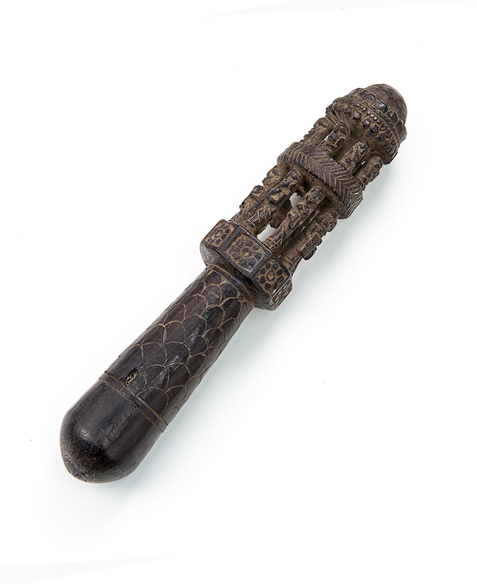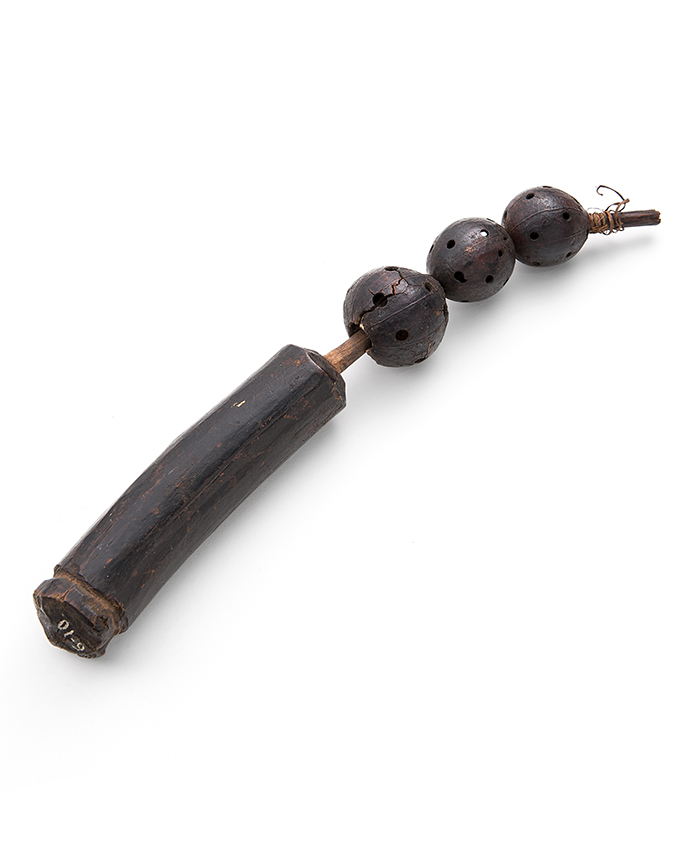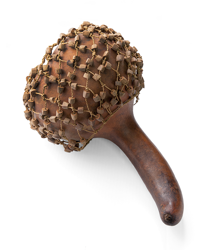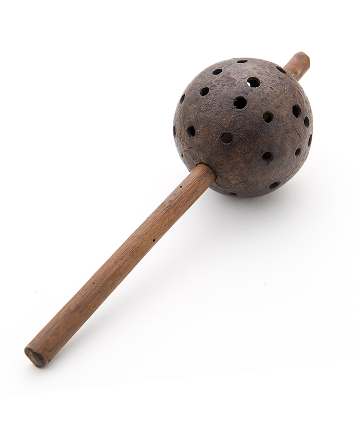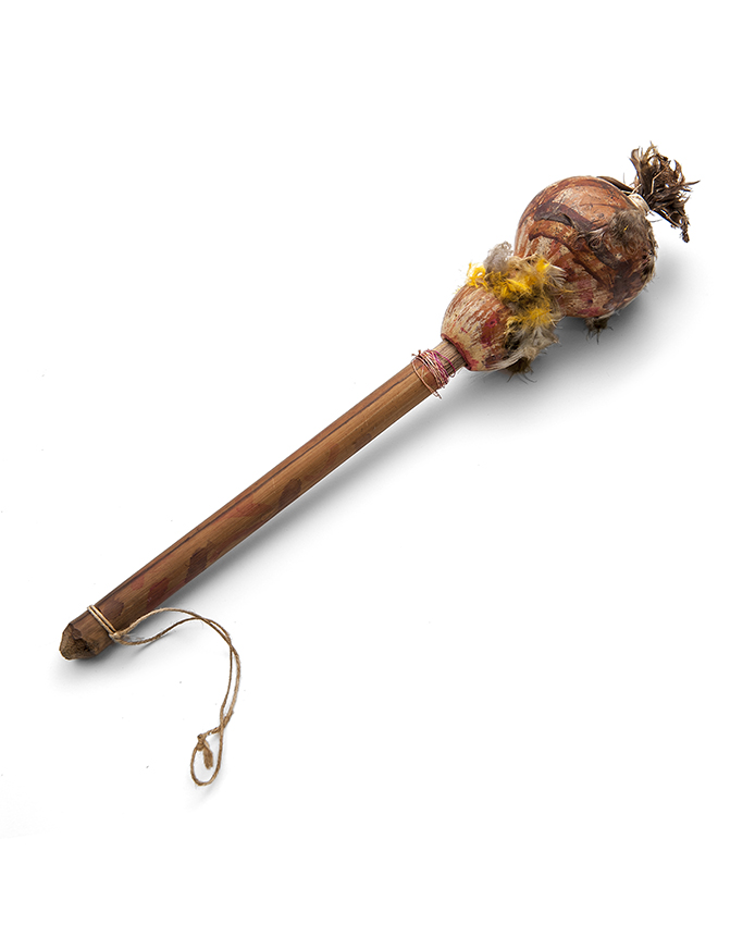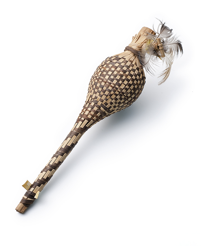 Gevlochten Indiase rammelaar van riet en in de vorm ...