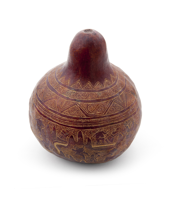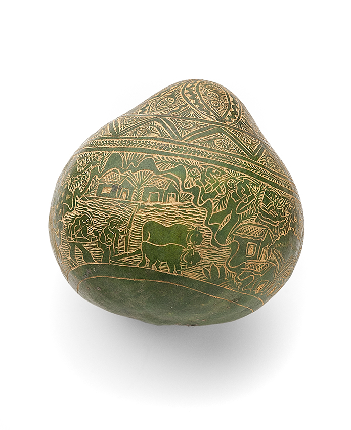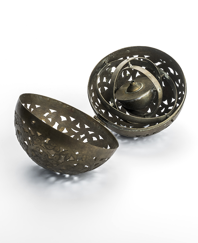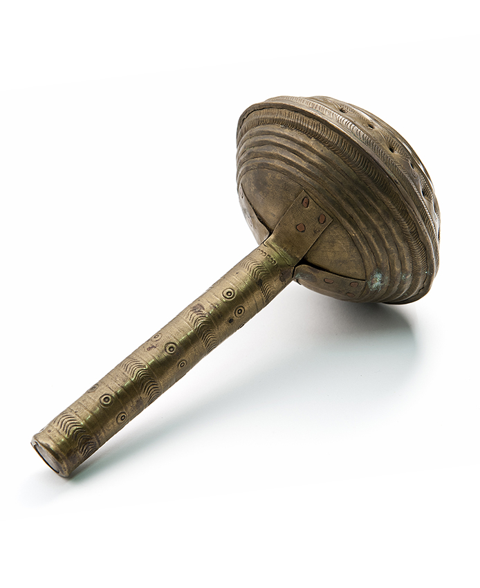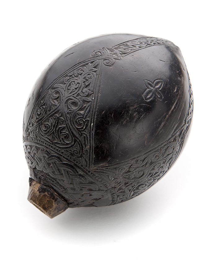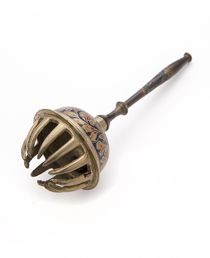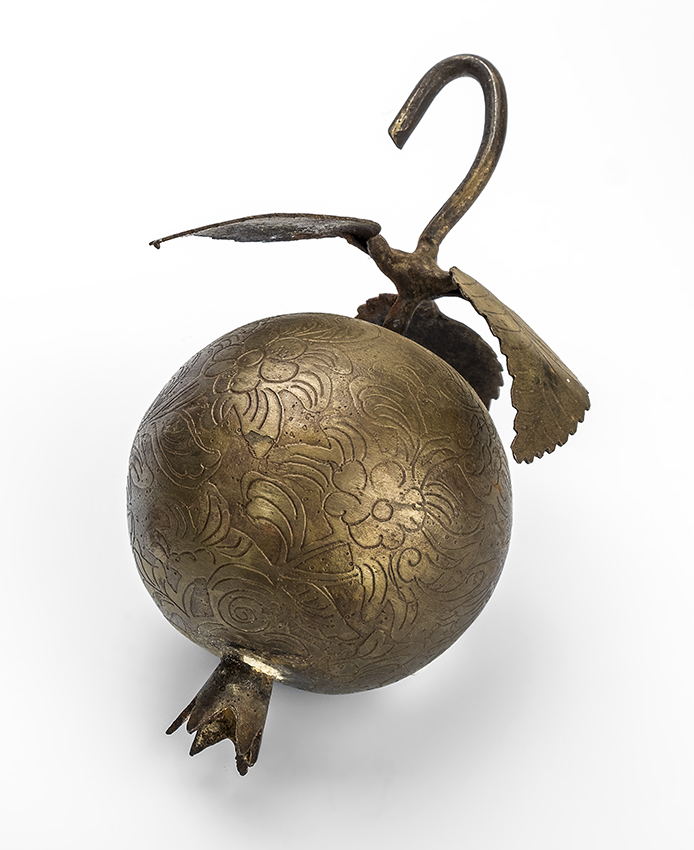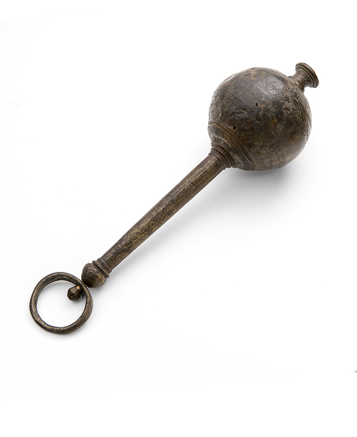 Bolvormige rammelaar met gegraveerde bloemdecoratie