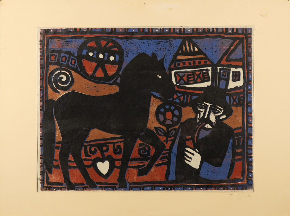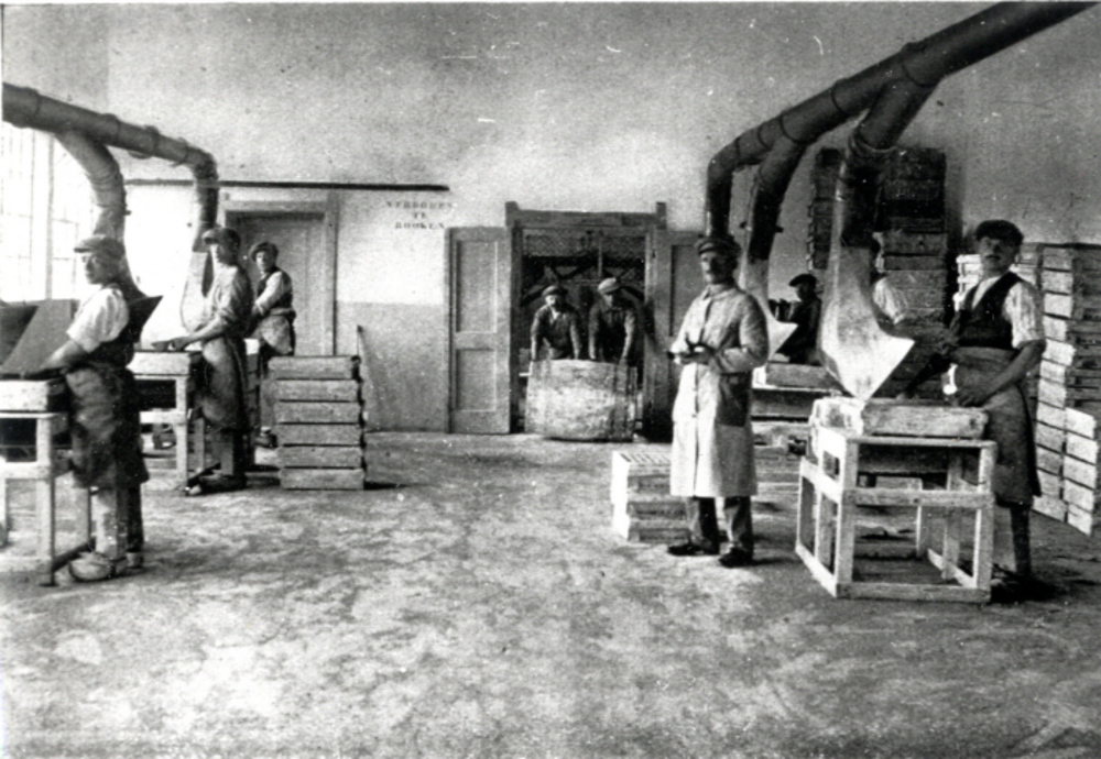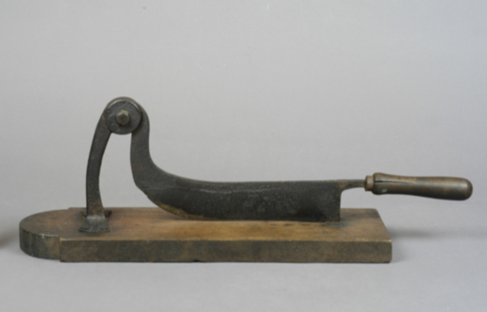 ijzeren roggebroodmes op houten plank, 20e eeuw