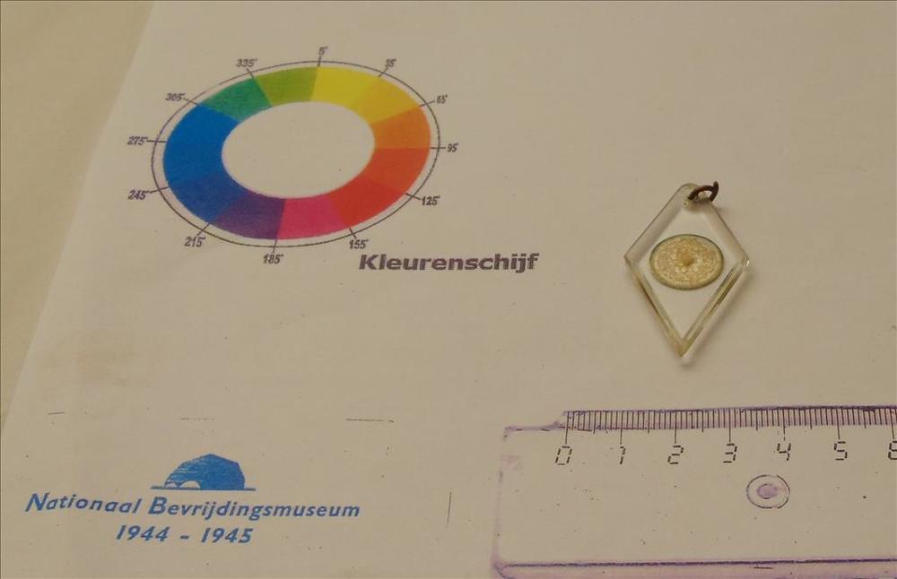 plastic hanger met daarin verwerkt een zilveren dubb...