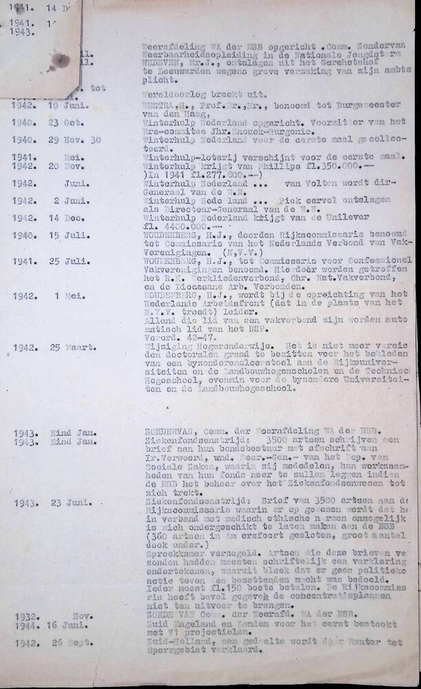 Getypte alfabetische lijst van data uit de geschiede...