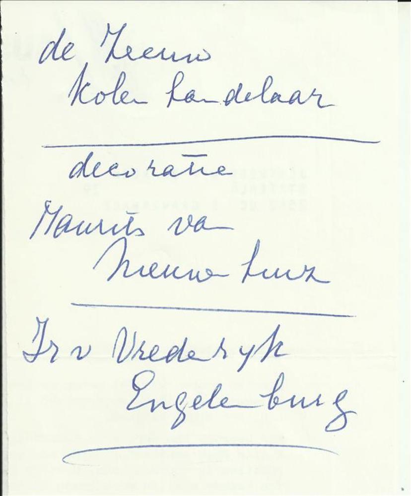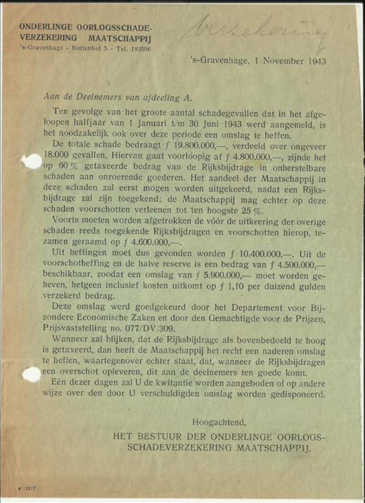 Brief aan dhr M. Visser van de Onderlinge Oorlogssch...