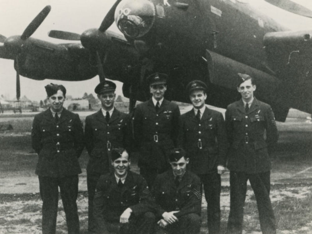 Foto van zeven man in R.A.F. uniform voor Avro Lanca...