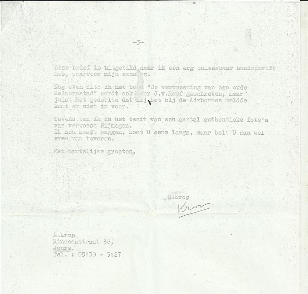 Brief van dhr Krop uit Joure aan mevr. Peeters betre...