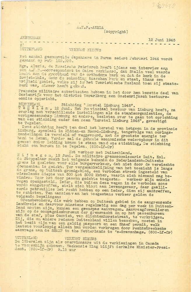 Vel: Algemeen Nederlandsch Persbureau, mededelingen,...