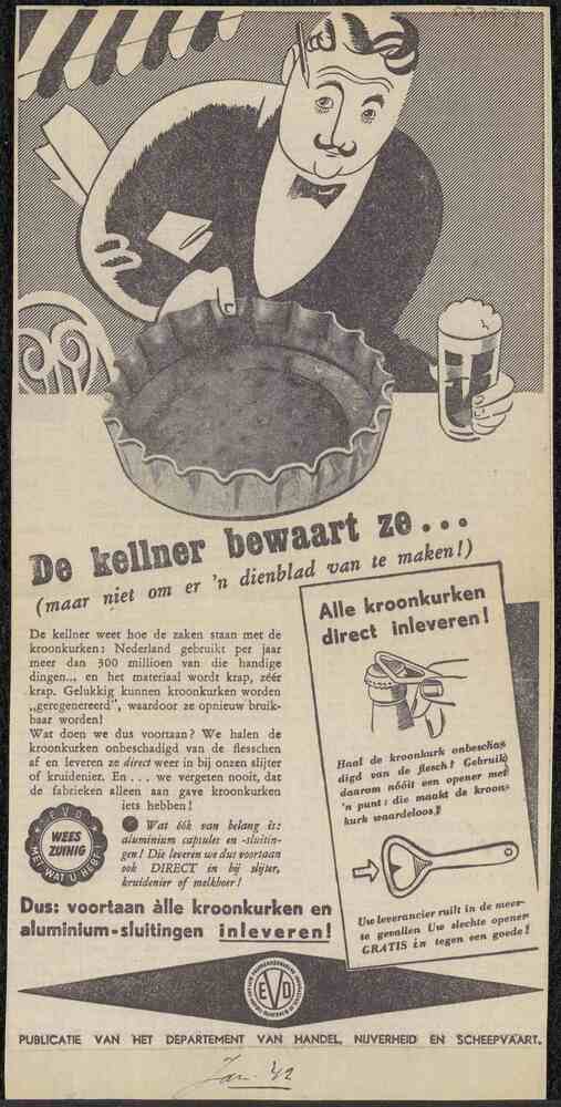 Vel met opgeplakte advertentie: "De kellner bewaart ...