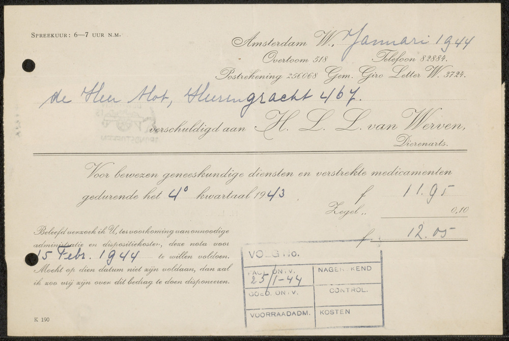 Rekening van Dierenarts H.L.L. van Werven Amsterdam
