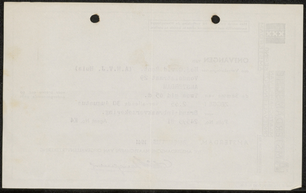 Kwitantie Amsterdamsche Maatschappij Ongevallenverze...