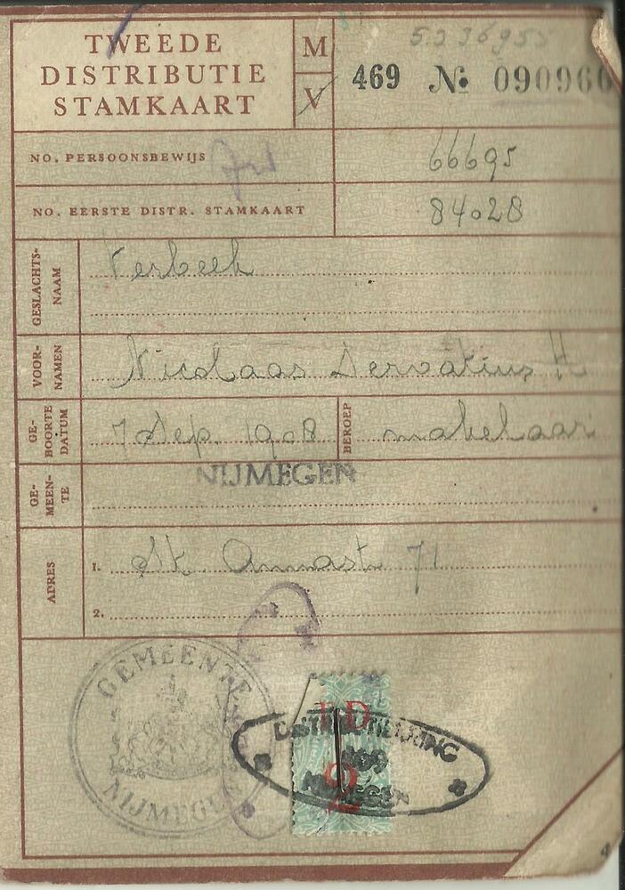 Tweede Distributiestamkaart op naam van Verbeek, Nic...