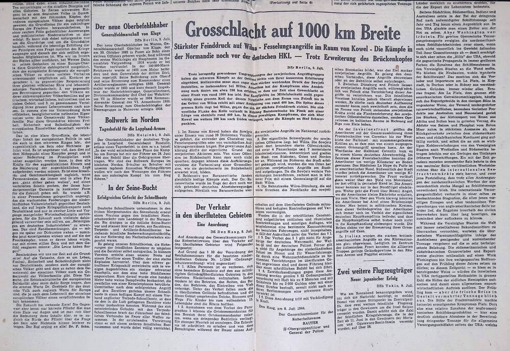 Deutsche Zeitung in den Niederlanden. 9 juli 1944.