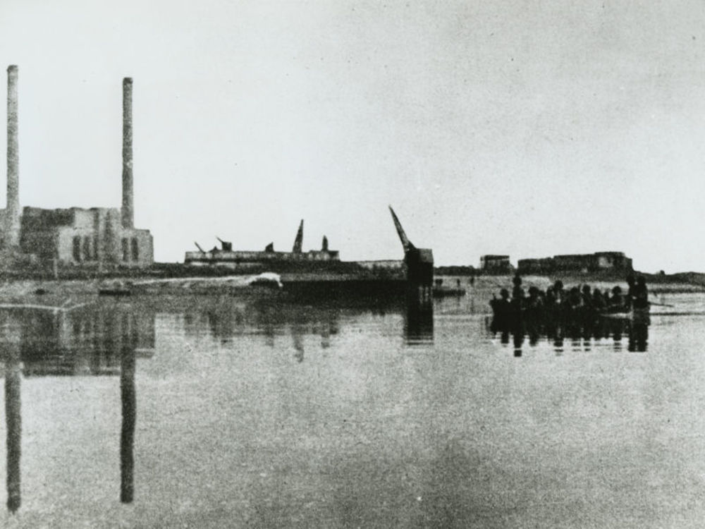 Foto van militairen in bootje voor electrische centr...