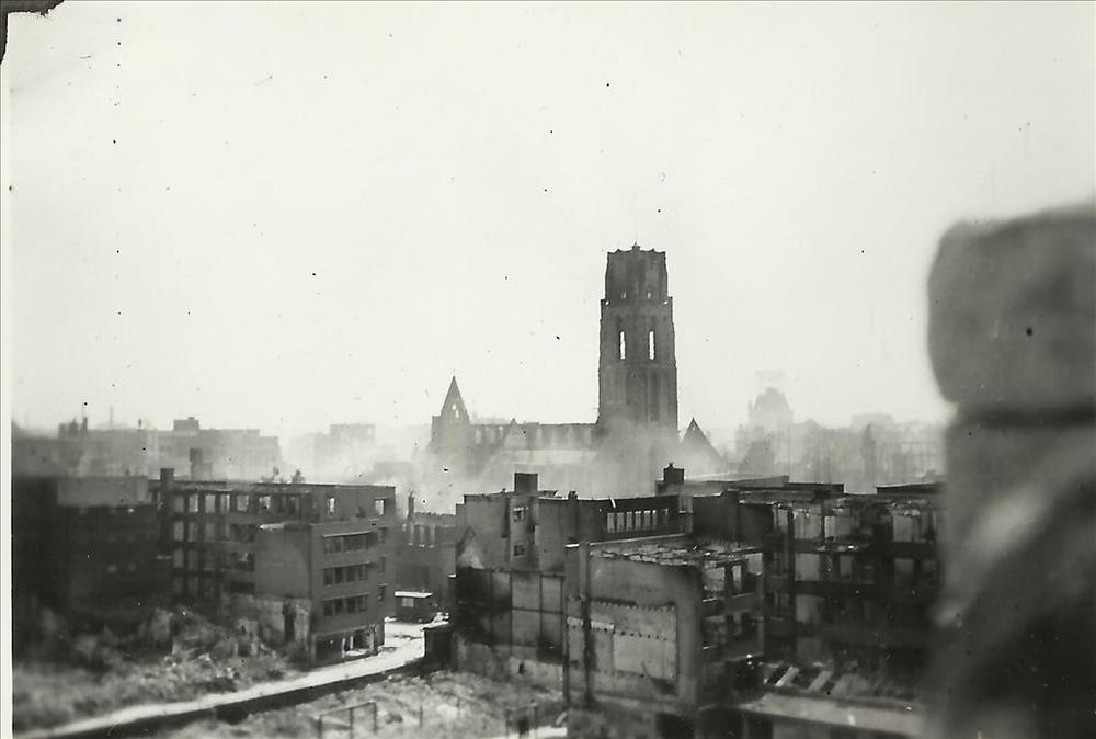 Rotterdam na het bombardement in mei 1940; Grote Kerk