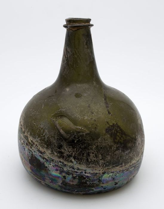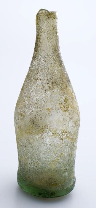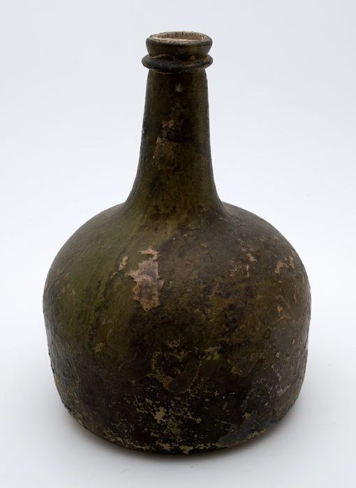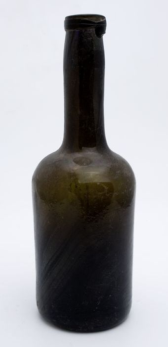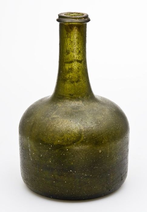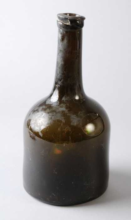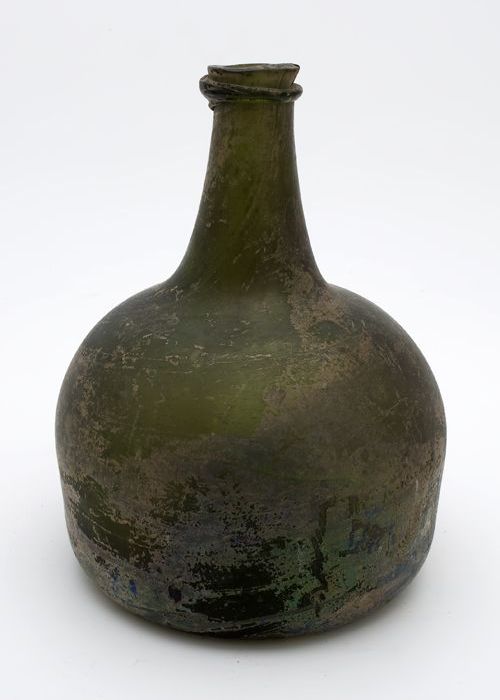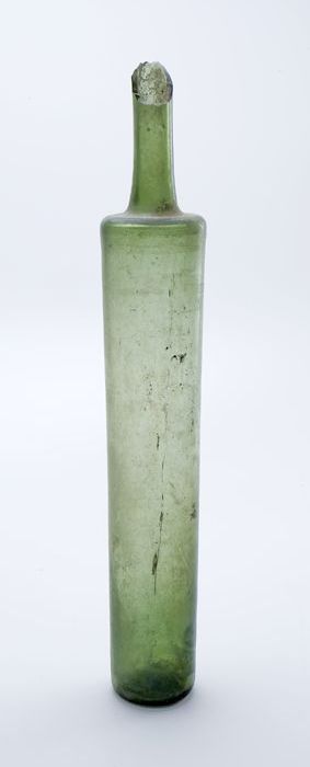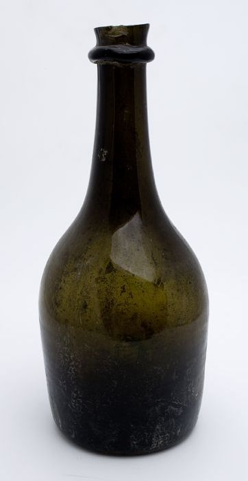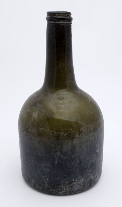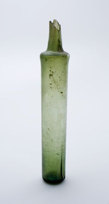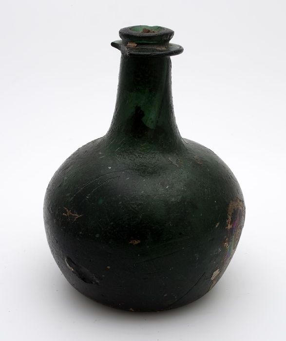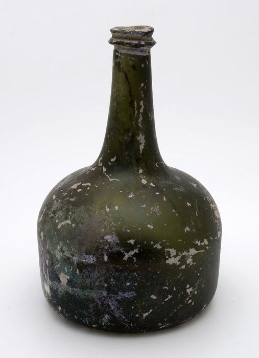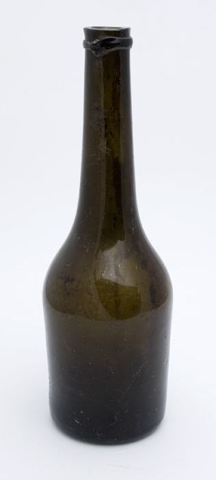 Groene rondbuikige fles (fragmenten), 'klokmodel'