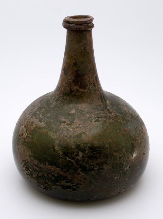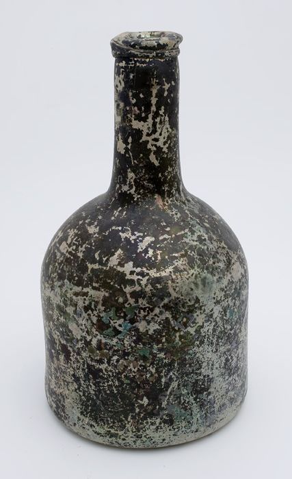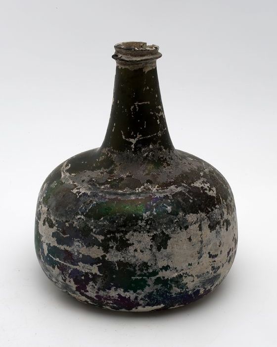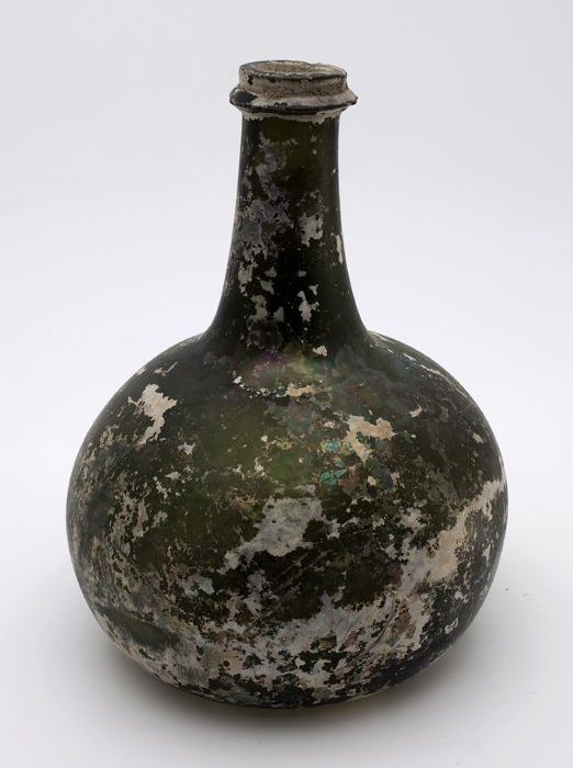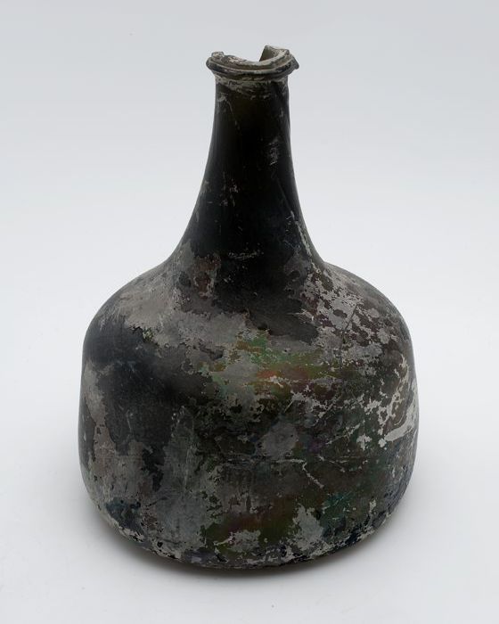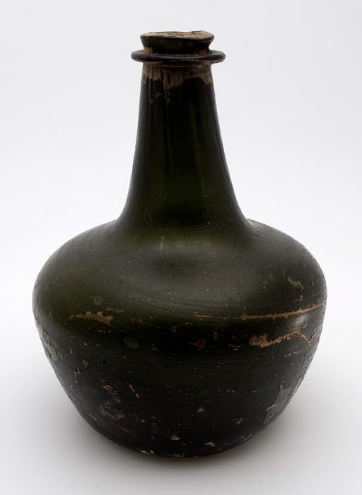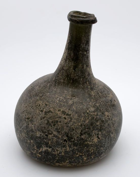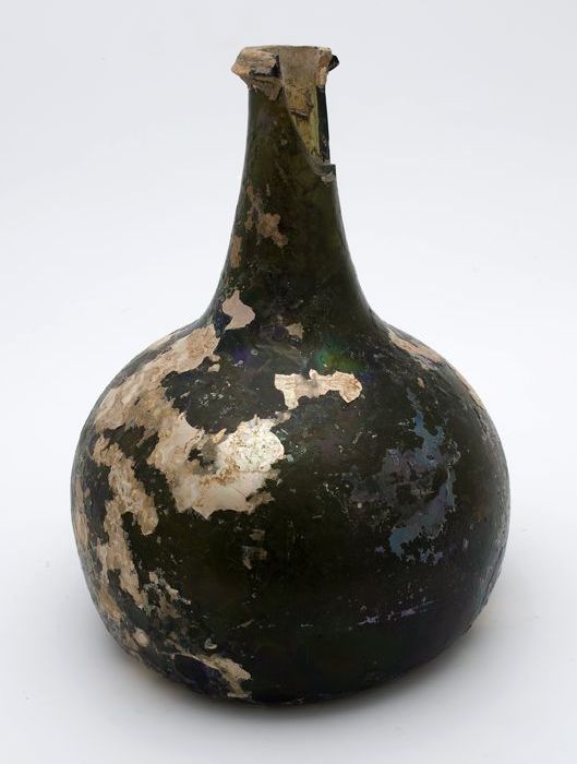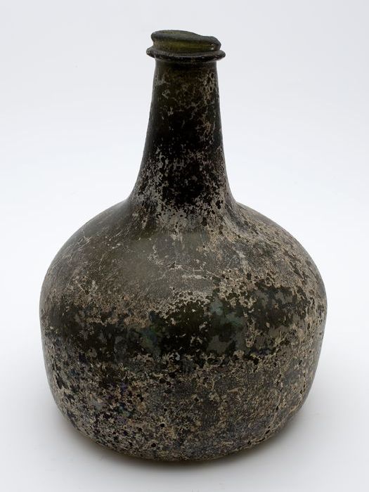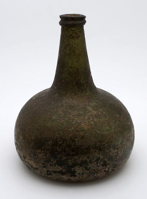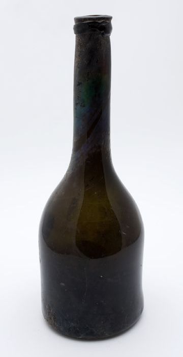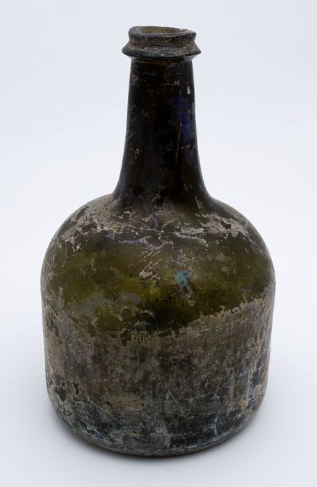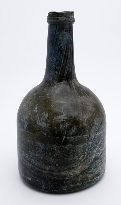 Groene rondbuikige fles (fragmenten), 'klokmodel'