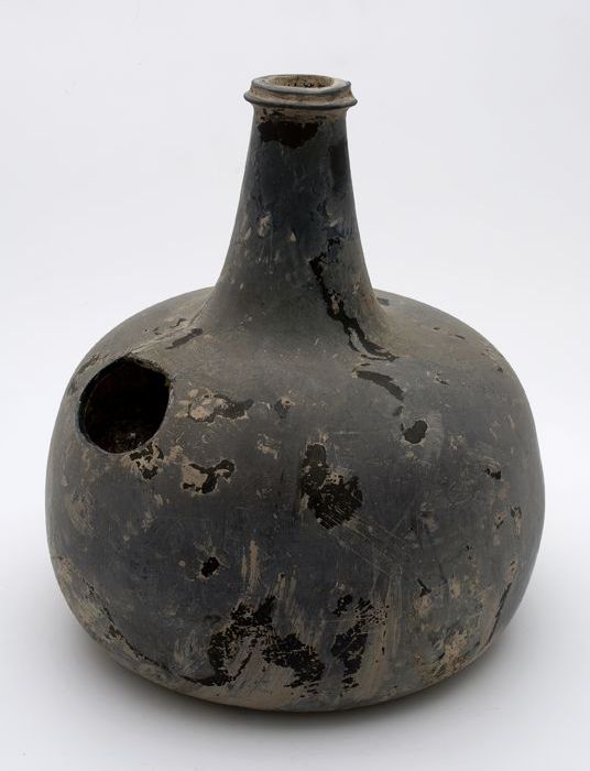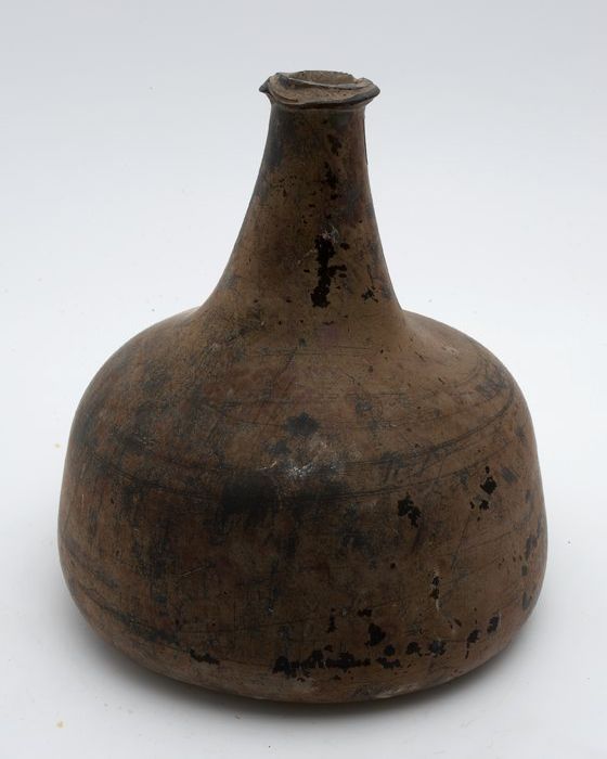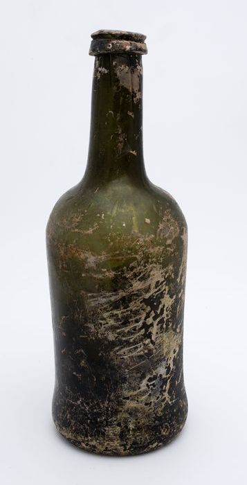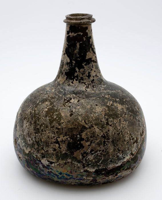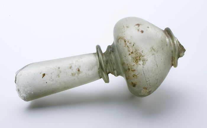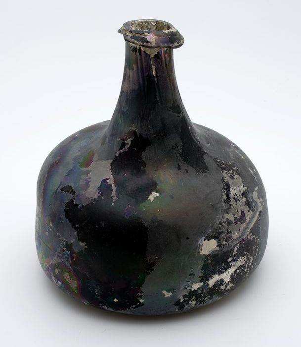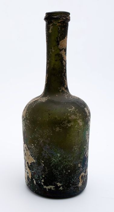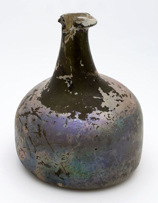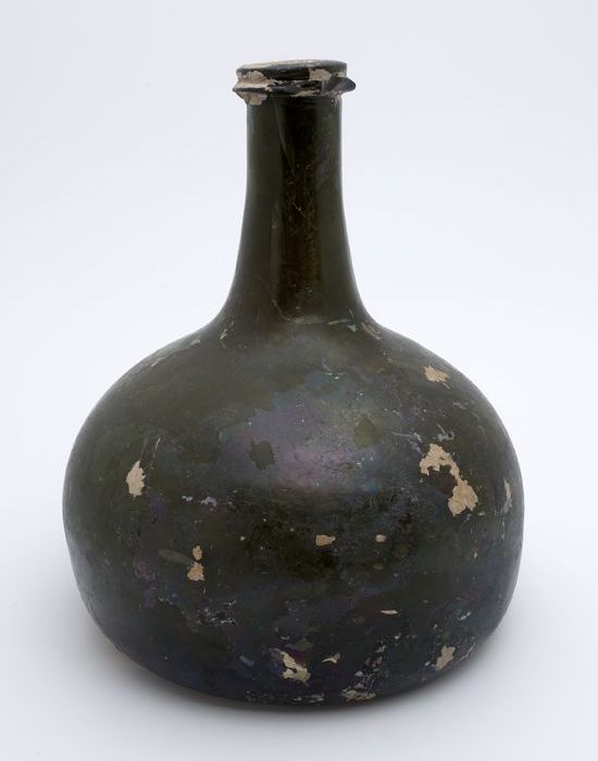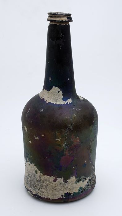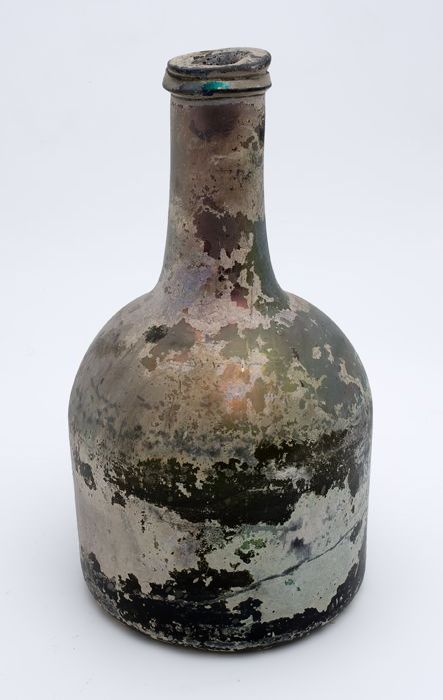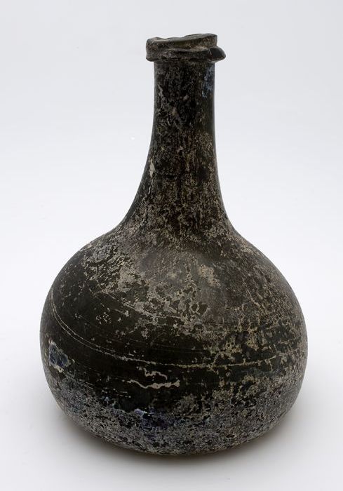 Groene rondbuikige fles (fragmenten), 'klokmodel'