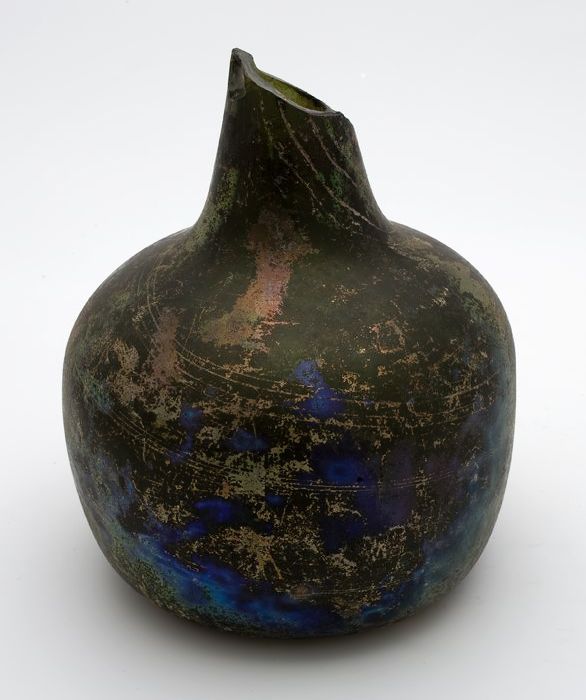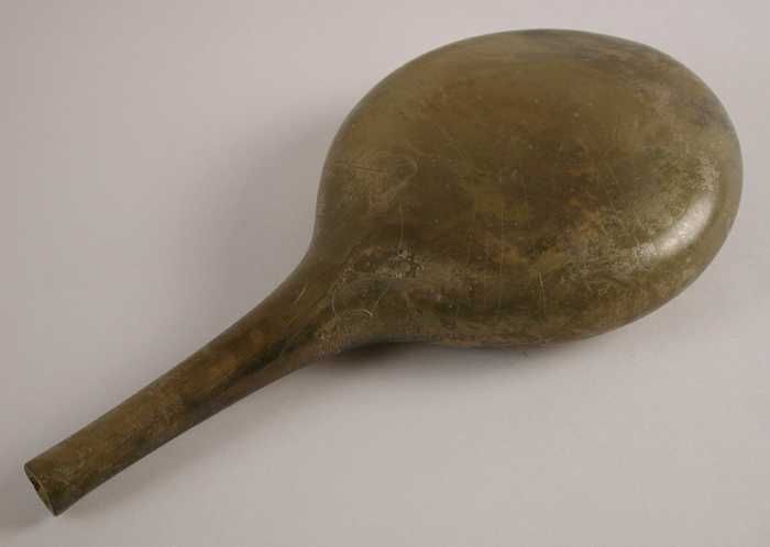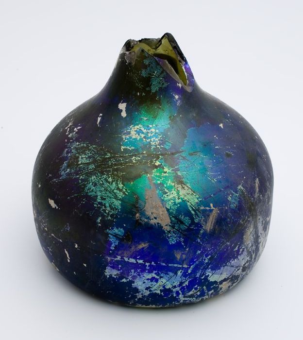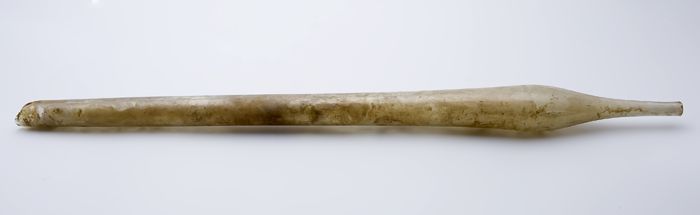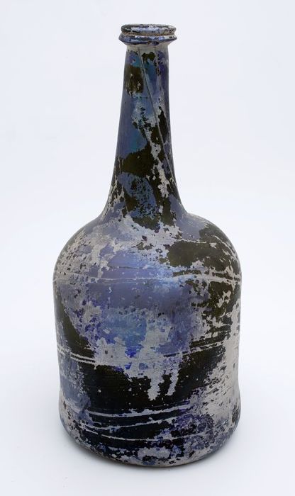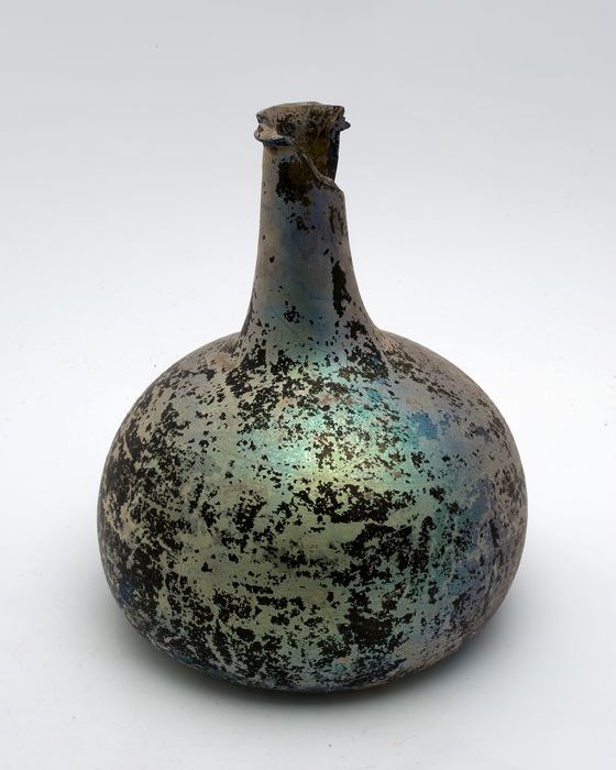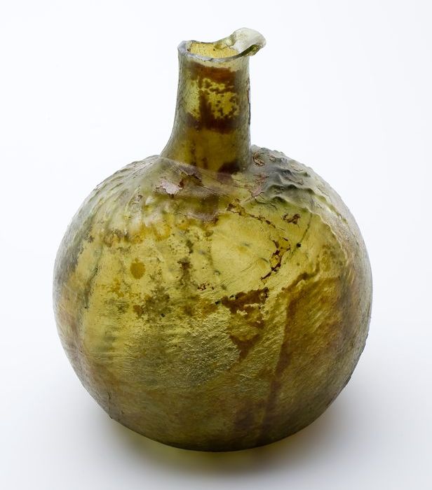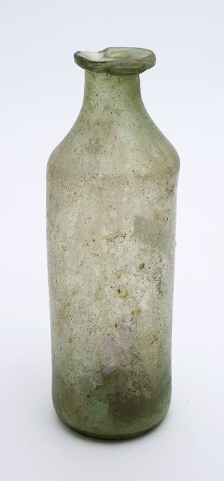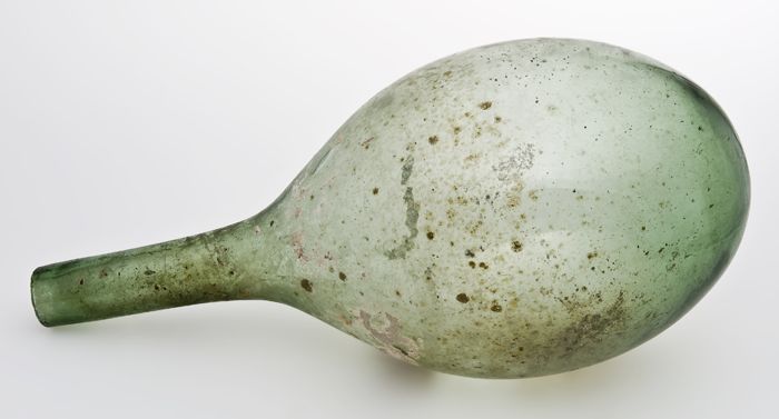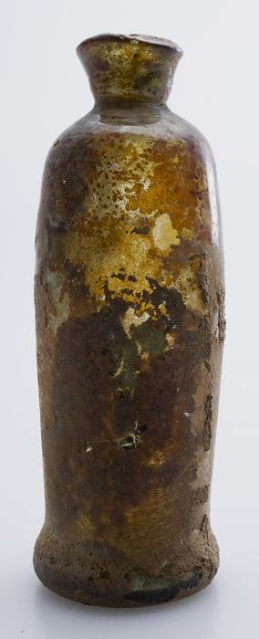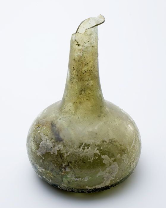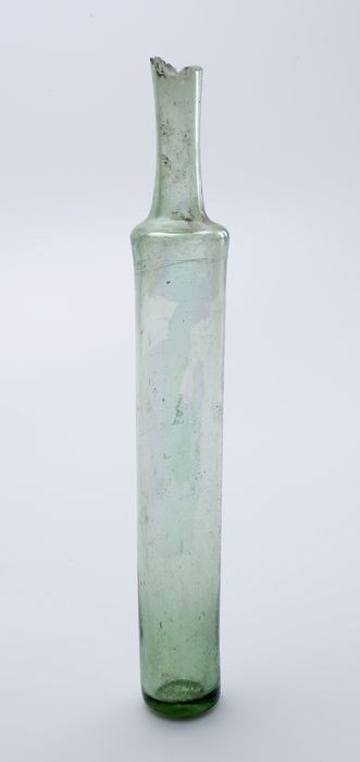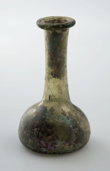 Kleine buikfles met lange hals en omgeslagen halsrand