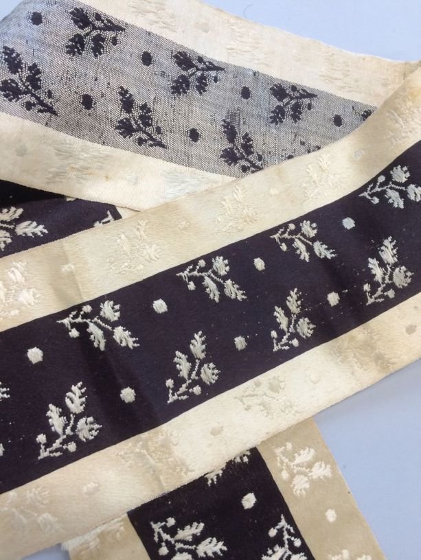 Zijden zonhoedlint voor de rouw, creme met bruinzwar...