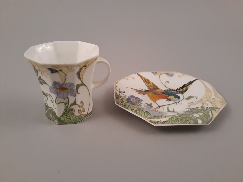 Kop en schotel van eierschaal porselein