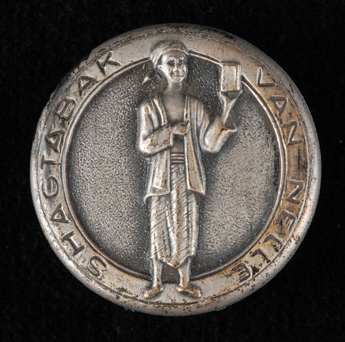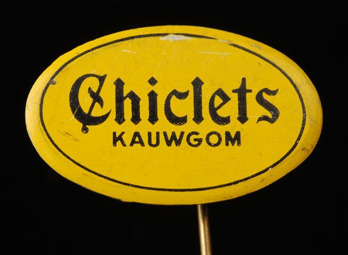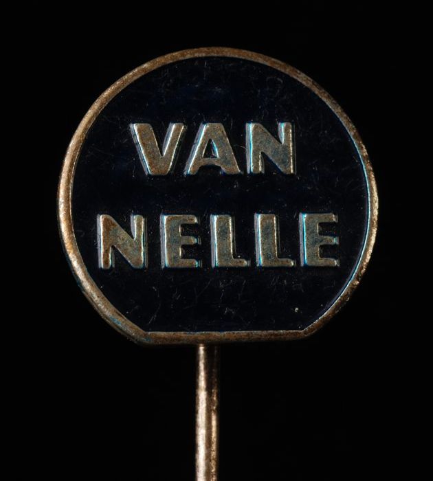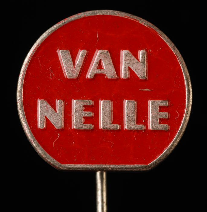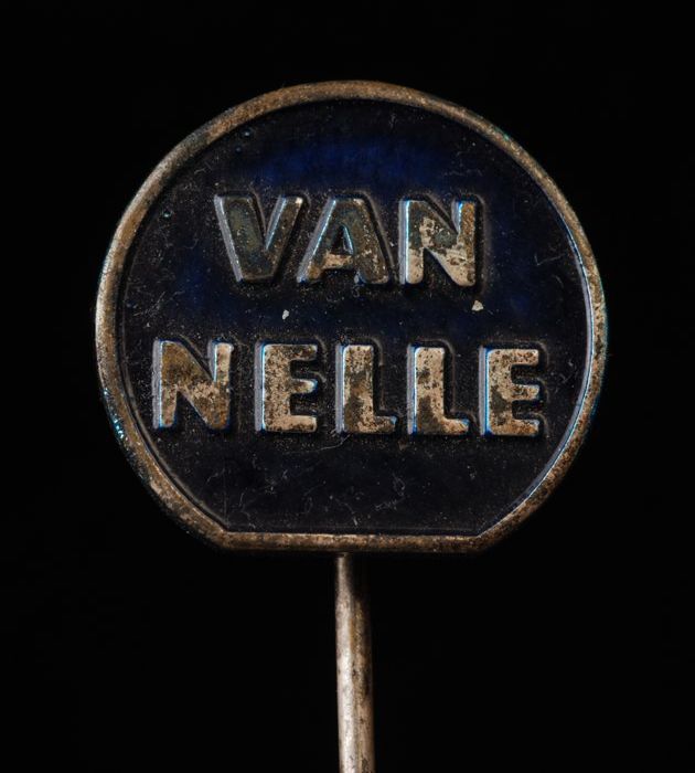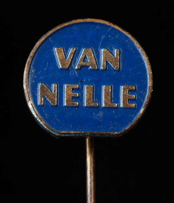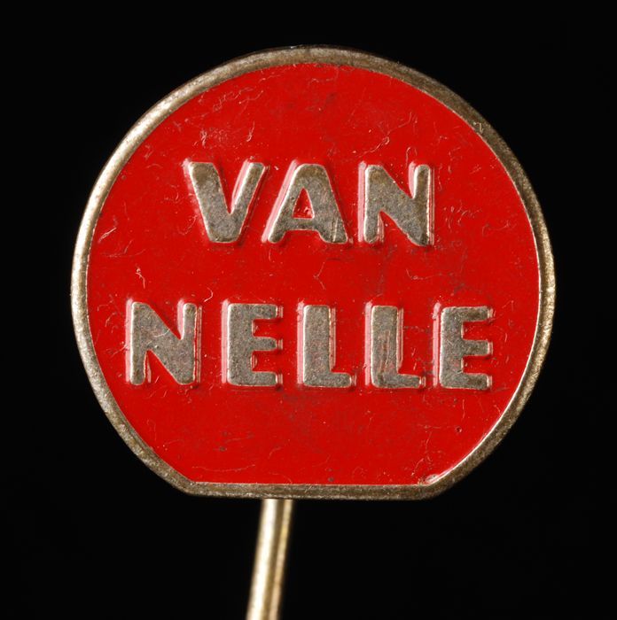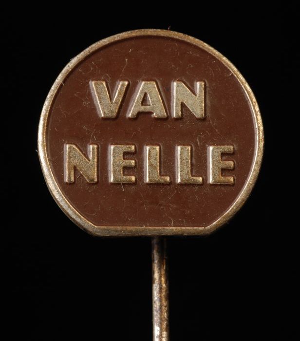 Speld met papieren vlag "Van Nelle voor Koffie en Thee"
