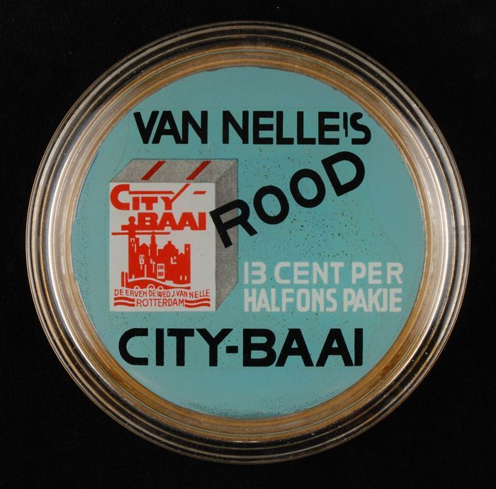 Glazen betaalschaal VAN NELLE, met reclame City Baai...