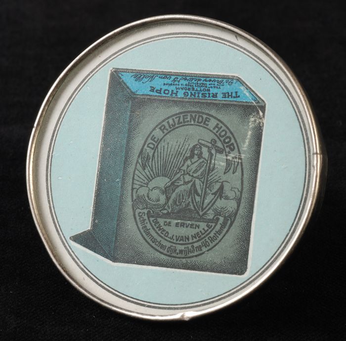 Metalen houder voor luciferdoosje, reclameartikel vo...