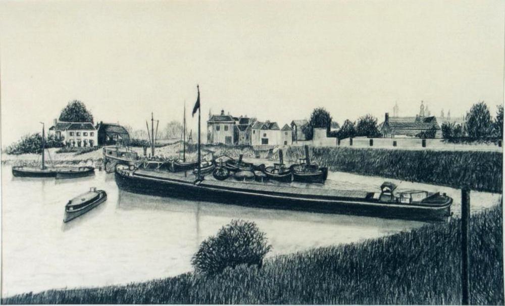 Gezicht op de haven van Zaltbommel met daarin liggen...