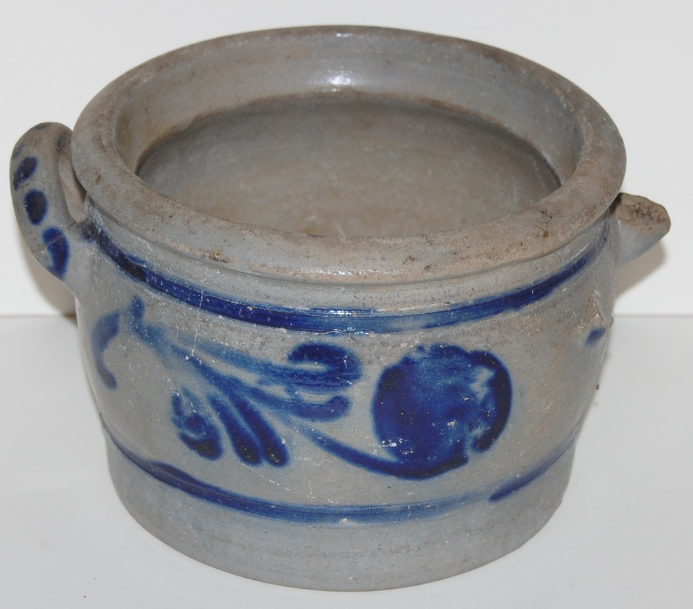 Keulse zoutpot. Laag cylindrisch model met twee oren...