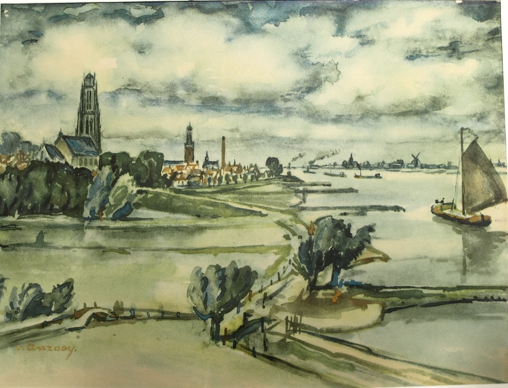 gezicht vanaf de rivier de Waal op Zaltbommel met ve...