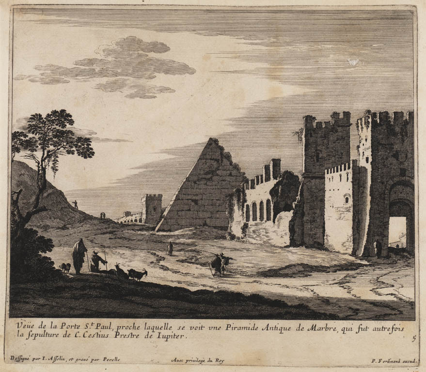 Gezicht op piramide van Cestius en de poort van San ...