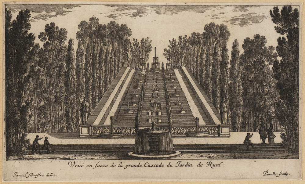 Veue en fasse de la grande Casade du Jardin de Ruel
